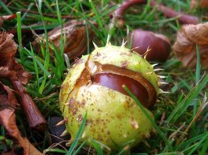 Do trávy padají kaštany,