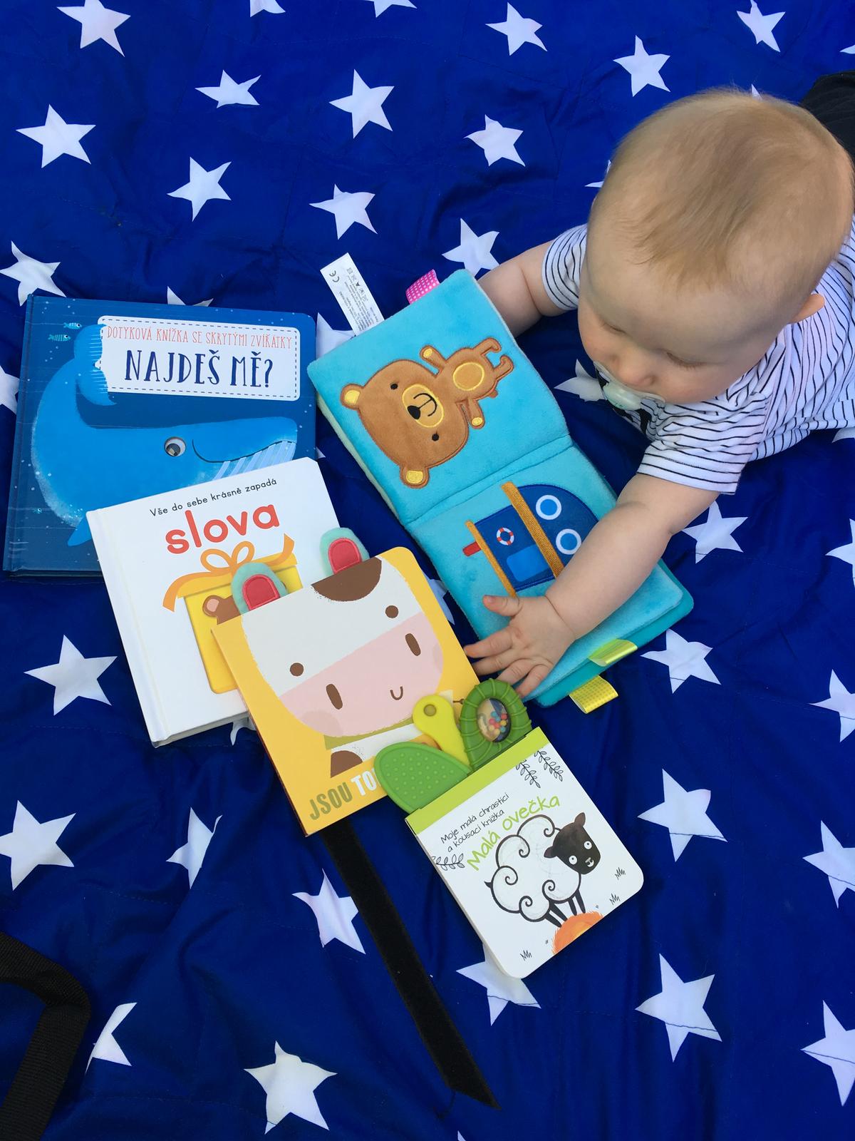 U nás zatím vede velká, plyšová šustící knížka se zvířátky a knížka s kousátkem, kde si později děťátko s vámi procvičuje paměť.📕