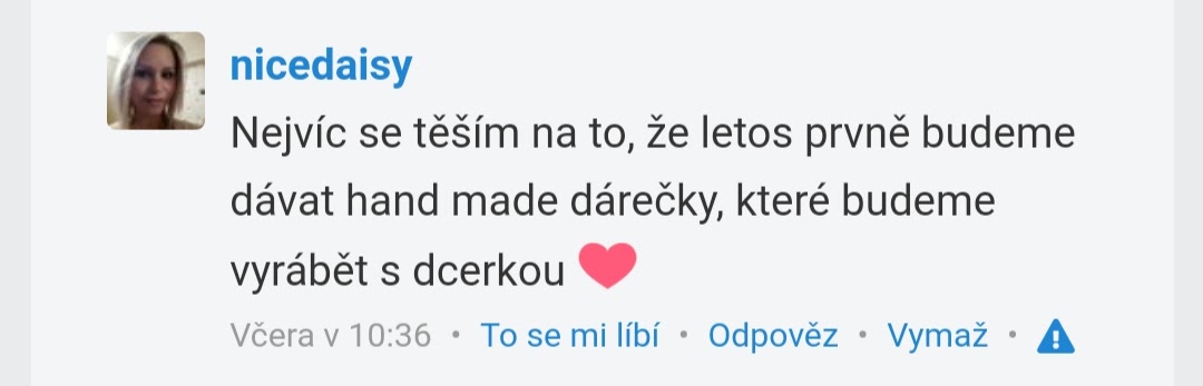 Po pročítání soutěžních příspěvků na mě skočila vánoční nálada a těším se s vámi! Tolik krásných dárků, ať už pořízených, nebo vyrobených a to těšení se, jakou radost našim milovaným udělají!