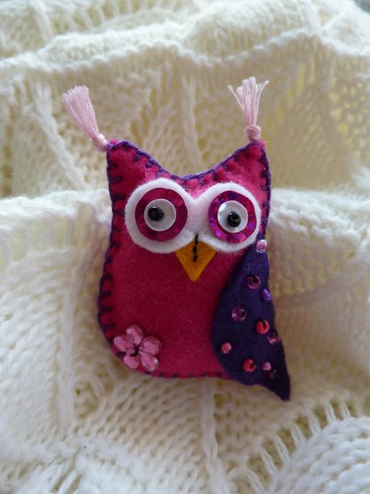 Barevné měkké veselé brože ručně ušité z barevných plstí, bavlnek, flitrů a drobných korálků.