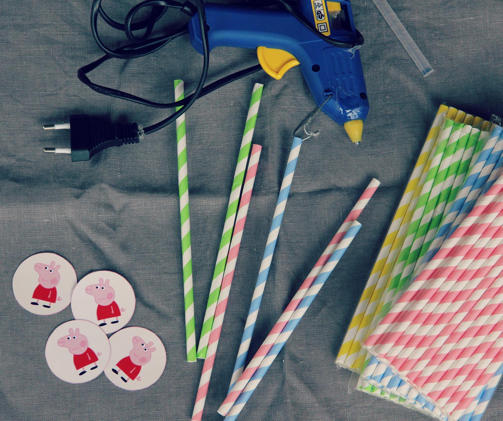 Tématické zdobení papírových brček - děti je milují. Stačí si vystřihnout váš motiv, může mít jakýkoliv tvar. Na brčko nanést trochu roztaveného silikonu z tavící pistole - stačí velikost čočky a přitisknout obrázek.
