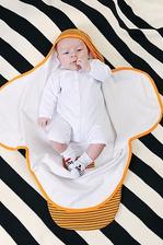 - Jednoduché použití: miminko na zavinovačku jednoduše položíte, přes nožičky přetáhnete spodní cíp zavinovačky a následně miminko překryjete pravým a levým bočním dílem zavinovačky. Zavinovačku lze pak jednoduše, pomocí suchého zipu stáhnout v horní části až do míry, která je miminku příjemná. Nožičkám přitom zůstává relativní volnost v pohybu (což mnohá miminka upřednostňují před pevným zavinutím celého těla).
