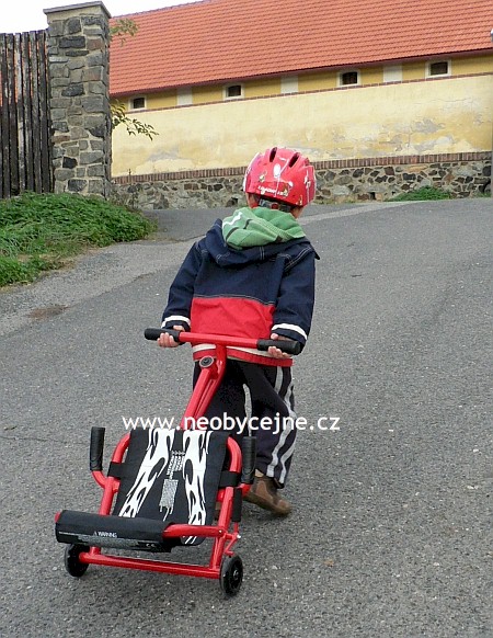Když ho někam přivezeme, tak na něj děti stojí fronty, aby si mohly vyzkoušet 🙂 Kloubí v sobě jedinečný pohyb, jde to snadno a zvládne to každý! Pro holky i kluky, malé i velké ( skvělá vychytávka – v základním balení jsou přídavné nástavce, kterým změníte vozítko pro dítě od 3 let nebo třeba od 15 let!!, max. zatížení 75 Kg).