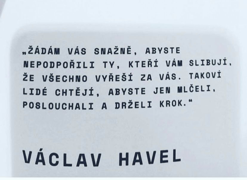 Holky, nikdo není dokonalý ani neomylný. Ani Havel nebyl. Já z něj žádného boha nedělám. Nicméně to byl ve vrcholné politice poslední člověk, který naši zemi velmi důstojně reprezentoval, kterého si vážili politici a osobnosti napříč světem, byl schopný lidi spojovat a říkat pravdu a který byl schopen vyplodit myšlenky, které s lidmi velmi rezonují do dnes.