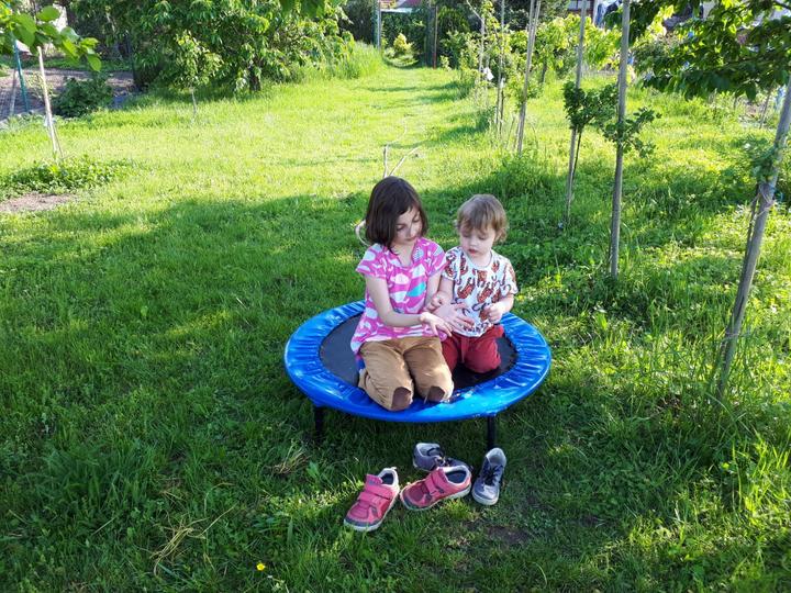 Holky doma a první úroda jahudek. Za chvíli se půjde maly vykoupat.