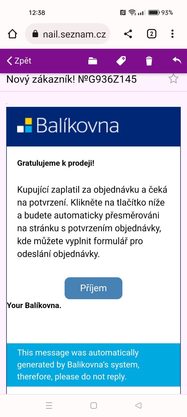 Ne balikovna takto nefunguje. Buď si jí celou zadáte vy od začátku. Nebo vám kupující rovnou pošle kód na odeslání. Je to podobné jako v zasilkovne. Nic se nepotvrzuje.