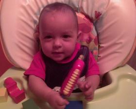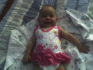 Za měsíc a něco mi bude už 1rok.. tak už pěkně lezu,postavim se na nožičky a strašně ráda žbrptlám... 😎 Jsem takový maminky radostný uzlíček!!