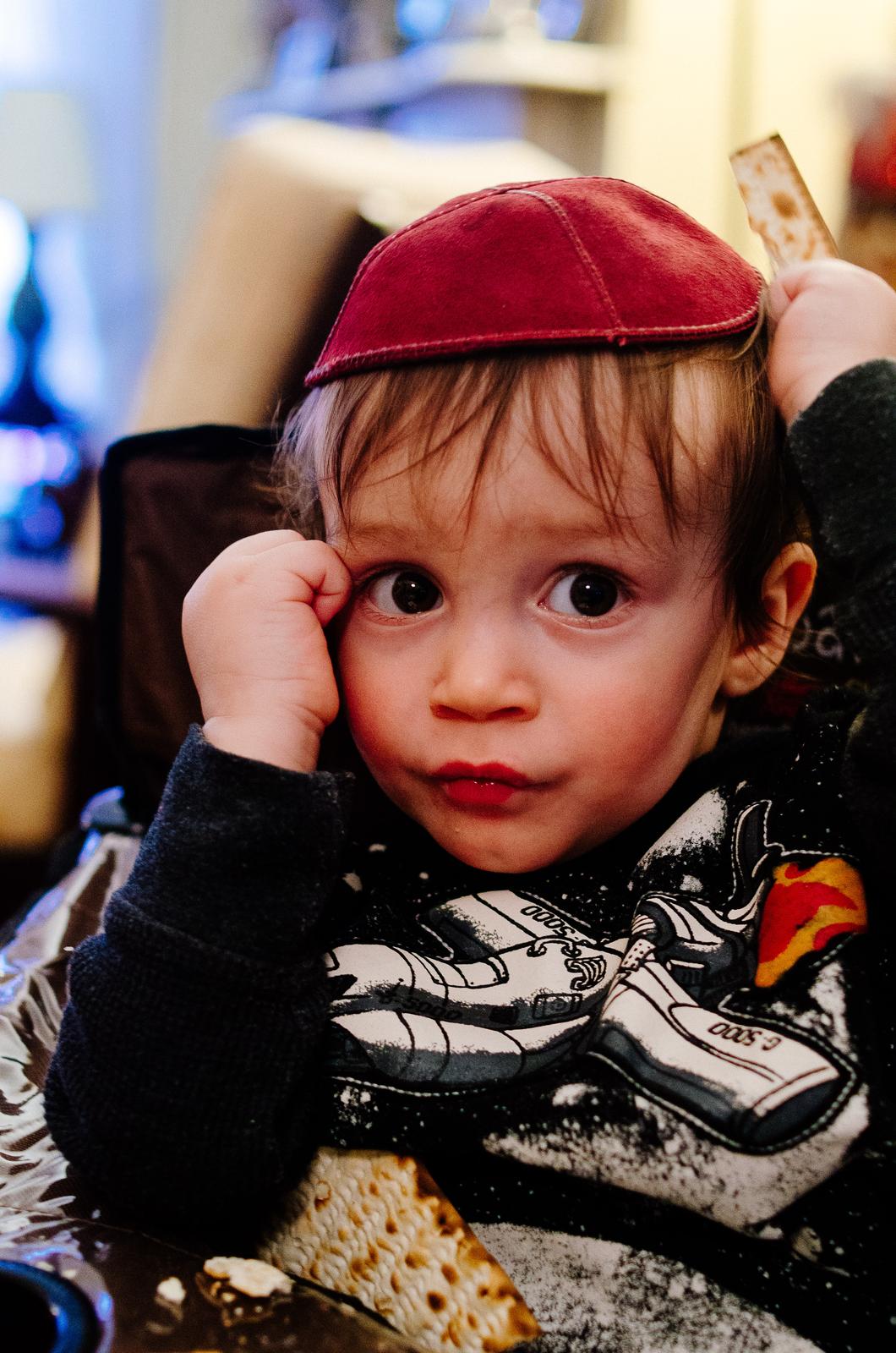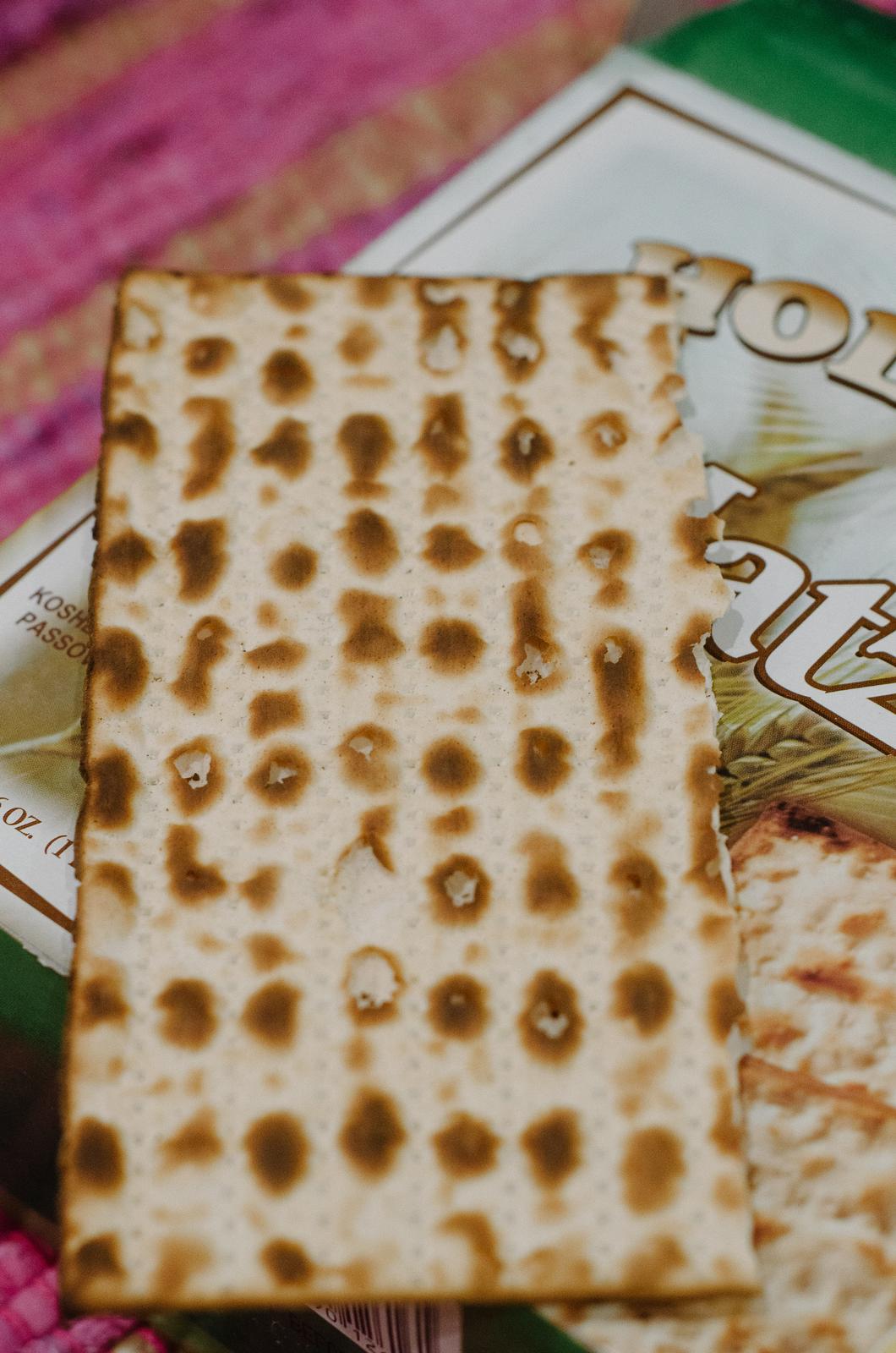 Základem Pesachu je maces neboli nekvašenej chleba, do kterýho se po století podle antisemitských pověstí přidává střídavě buď krev panen nebo krev novorozenců popřípadě pokud byla nálada šiřitele fakt drsná tak tam šoupnul oboje. Maces je nekvašenej chleba udělanej z mouky a vody a totálně bez chuti. Velice oblíbený jsou pak macesy hlavně u dětí. Takovej mini chlapík kupříkladu macesy úplně zbožňuje jednak mu chutnají a jednak se dají božsky nadrobit do náklaďáků, postýlky, gauče, velký postele, prostě je to jídlo k nezaplacení. Matčino srdce plesá nad pohledem mini chlapíkových prstíčků trénujících si jemnou motoriku na krabici macesů.