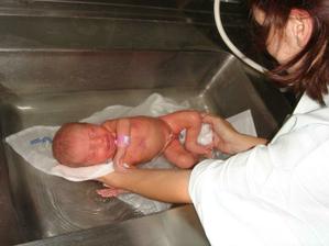 Přijeli jsme o půl 8 a během hodiny jsem stihla sepsat papíry, lehnout k monitoru, pak na kozu, tam mi Dr. Bambas praskl vodu, sestra podala nálev. Zašla jsem na WC, pak do sprchy a hurá na porodní sál. Po třetí kontrakci byla Klárka na světě. Měla kolem krčku 1x omotanou pupeční šňůru, ale jinak byla naprosto v pořádku. Po minulém porodu jsem byla tak poctivě zašitá, že vše drželo na svém místě a nebylo mě potřeba zašít. Této části porodu jsem se bála nejvíc. Šití zaživa není opravdu nic příjemného.
