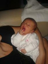 Rodit jsem se rozhodla tentokrát v Brně - Bohunicích. Poprvé jsem rodila v Břeclavi a nebyla jsem 2x spokojená. Manžela mi poslali hned domů, uložily mě na ,,hekárnu,, , kde jsem rušila spící těhulku. Narazila jsem na 1 ráznou slovenskou sestřičku a hned jsem byla vyhukaná. Pořád mě sestry ujišťovaly, že jako prvorodička budu rodit až za 12 -15 hodin. Že jsem jim hlásila intervaly mezi kontrakcemi čím dál častější a že nemůžu vydržet v bolestech až do rána, to je nezajímalo. Nakonec jsem rodila už za 9 hodin. Manžela jsem zavolala pozdě, přijel až k porodu placenty a třičtvrtě hodinovému šití. Ellinka byla už po 2 po sobě jdoucích kontrakcích na světě a udělala si takovou cestu ven, že mi praskla céva a byla jsem roztrhaná vevnitř i venku. Šití venku jsem po 2 injekcích necítila. Ovšem šití vevnitř ano. I manžel měl možnost pocítit jak jsem trpěla. Celou dobu mě totiž držel za ruku a opakoval mi spolu s doktorkou ať povolím zadek. Paní Dr. mi řekla, že po tom, co se dlouho nemohla odloučit placenta, bude vhodné udělat za pár dní ultrazvuk. Nestalo se tak.