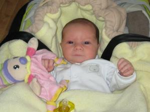 V Dubnu jsme zjistili,že na těhotenstkým testíku máme dvě čárečky jelikož se ms.nedostavila a pani doktorka nám to potvrdila takže jsme byli moc šťastný.Všechny testíky co se týče srdíčka,cukrovky,výv.vad máme vše v pořádku teď jsme v osmém měsíci a moc moc se těšíme.Tak 11.1 2010 se narodila Adélka termín jsme měli 16.1 ale chtělo se nám ven dřív.Můj porod: Začalo to tím,že jsem ležela na rizikovým těhotenství v nemocnici kvůli tlaku a jaterním testům.Jednou při vizitě se doktor rozhodl,že mi porod vyvolá,jenže těsně před plánovaným vyvoláváním porodu se Adélka rozhodla přijít na svět sama.Takže 10.2 2010 v 16.30h na mě přišli kontrakce po 20min. a pak se to stupňovalo po 10min.po 5.po 2min.To jsem se ozvala sestřičce že mám kontrakce a tak jsem šla na vyšetření na vyšetřovnu a pan doktor byl ještě nepříjemnej a říkal mi že nemůžu mít kontrakce,že bych tu jen tak nestála,ale já mu řekla,že je prostě mám tak se neochotně na mě podíval a zjistil,že mám pravdu že jsem na 2cm otevřená a že do druhého dne do rána porodím.Tak jsem si šla zabalit své věci na pokoj a přešla jsem na porodní sál.Tam probíhali veškéré přípravy jako je klistýr,holení atd.Pak mě uložili na porod.box a ve 01:00h přijel manžel byla jsem hrozně ráda,že může semnou být u porodu opravdu to moc pomohlo.Pomáhal mi při kontrakcích.Pak mi v 02.00h píchli plodovou vodu to nebolelo...No a čekalo se až se otevřu víc a kontrakce zesílí ještě víc.Pak k ránu mi napíchli kapačku na zmírnění bolestí,ale vůbec nic mi to nezmírnilo.Akorát,že jsem po kapačce byla mimo byla to nějaká oblbovačka.Pak si pamatuji jak mi porod.asistentka říkala ať při kontrakcích se uvolním aby sestoupila hlavička níž no snažila jsem se,ale moc to nešlo,ale nakonec se podařilo.Pak příšla doktorka se podívat která měla akorát jít na vizitu na rizikovku jenže se na mě podívala a jen jsem slyšela jak říká musíme jí už odrodit už jsem toho měla dost začalo to od 16.30 a Adélka se narodila ráno v 08:22h.už jsem říkala ať mě odrodí císařem.Nakonec to šlo jak po másle šup na postel tlačit tlačit tlačit a Adélka byla na světě.Ani jsem nevěděla,že mě nastřihli.Jen to šití bolelo.Snad nejvíc z celého porodu.Pak jsem se podívala na manžela koukal na naší holčičku a také si jí podepsal na nožičku.Na co nikdy nezapomenu tak je to jak na mě koukal se slzami v očích byl šťastný,že máme tak krásnou dcerušku,že je vše za námi a že jsme všichni v pořádku.Bylo to fakt krásný.Pak por.asist.nabídla manželovi kávu a nechali nás na boxu samotný tak jsme hned každého obvolávali a dívali se na naší holčičku Adélku.Na porod vzpomínám moc ráda je to krásný zážitek.Bolest se dá překousnout pak už jen to nejhezčí.Dnes je Adélce měsíc a jeden den a krásně přibírá na váze už si dokáže vzít chrastítko do ručičky,krásně zvedá hlavičku.Je moc šikovná a jsme moc šťastný,že jí máme.Konečně jsme 3...