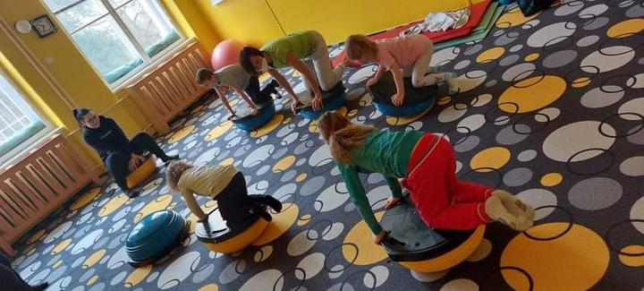 Malé děti s doprovodem rodiče mají u nás také rehabilitační program. Takhle cvičí pod dohledem fyzioterapeuta. Dalo by se říci, že cvičení je hrou.🙂