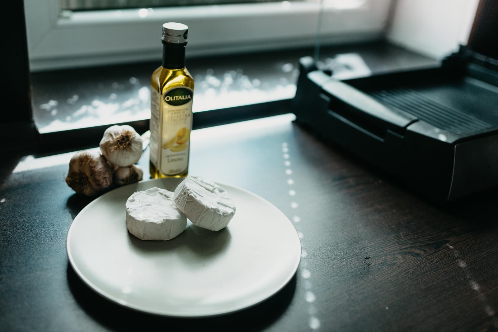 Hermelín jsme nechali na grilu 7 minut pod přiklopeným sklem a sníženou teplotou na termostatu. A byl uvnitř ideálně rozteklý.