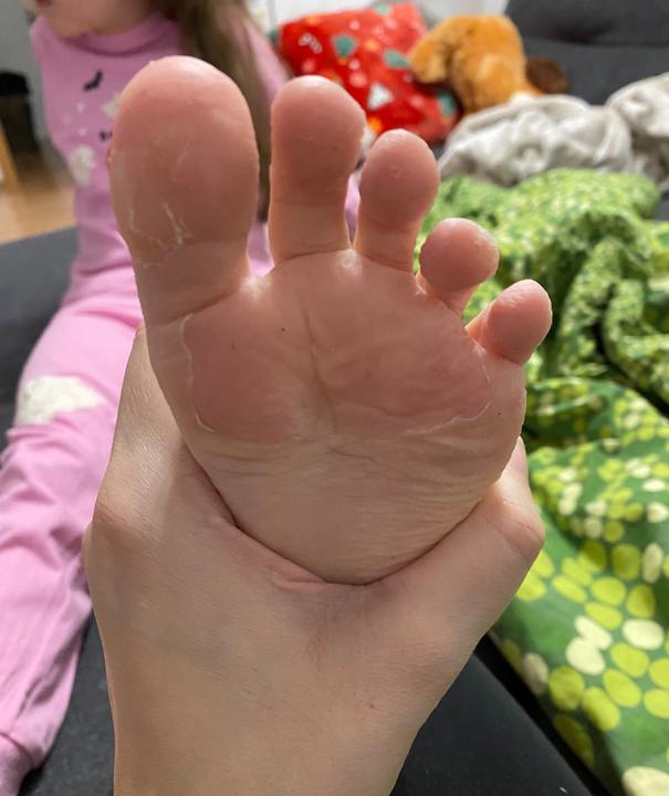 Holky prosím co by to mohlo být? Nějaká plíseň? E. chodi na bazén (kde ma tedy pantofle) ale ted od nového roku ještě nebyla, taky se ji hodně potí nohy, když přijde domů ze školy ma mokré ponožky ale tohle vidím poprvé… teď byla 14 dni zpět nemocná, antibiotika, vysoké horečky… muže to byt k tomu? Ma takhle sloupána obě chodidla