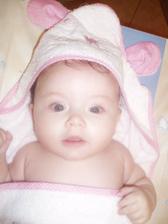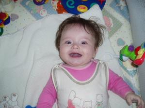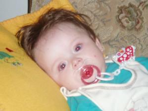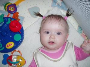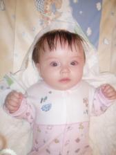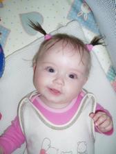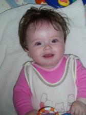 Barborka Chelíková. Narozená 16.4. 2008 ve Vyškově. Ve 4. měsících vážíme 6.95 kg a měříme62 cm.A pořád se máme k světu...........V necelých 6. měsících vážíme 7.76 kg a měříme 66 cm.