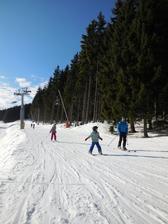 @romanka30 Dobrý večer, od Alenky to může být vzdušnou čarou cca 300 metrů a určitě to s dětmi sjedete🙂 Navíc v této části je sjezdovka širší a případně si můžete zastavit dle potřeby 😉 Od ledna jsou zde i dětské školky, tak můžete vše spojit v jedno a užít si krásnou aktivní dovolenou 😉 Pavla
