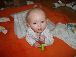 Malá je celej tatínek!Moc šikovná holčička, taky si pamatuju, jak jsme Danušu co chvíla fotili, je to prima období, užívejte si ho, uteče to ani nebudete vědět jak!