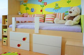 já to sice víceméně zkopčím ale jen proto, že by mě asi nenapadlo dát mezi dvě postele šuplíky (nebo skříňku) o stejné hloubce jak postele.. 🙂 a taky jsem řešila jak udělat ten spodek postelí a ta skříňka a 4 šuplíky se mi moc líbí 😵