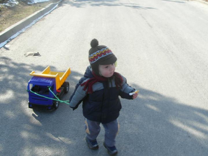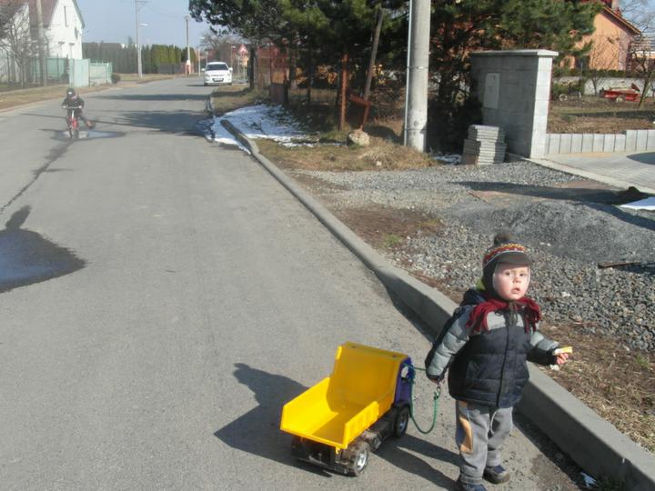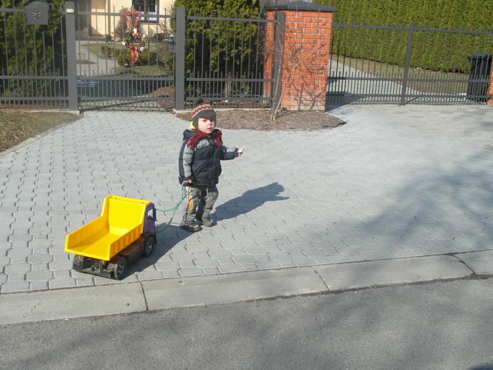 zlatíčko právě řeklo auto 🙂 natahoval se k němu a nemohl dosáhnout 🙂)