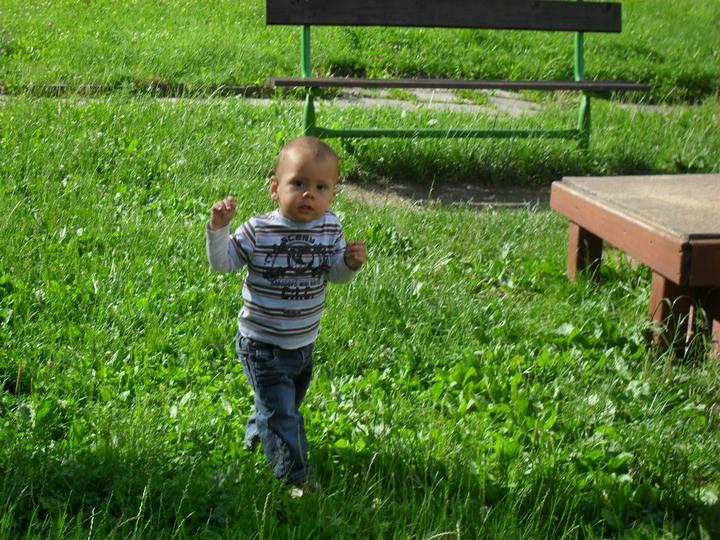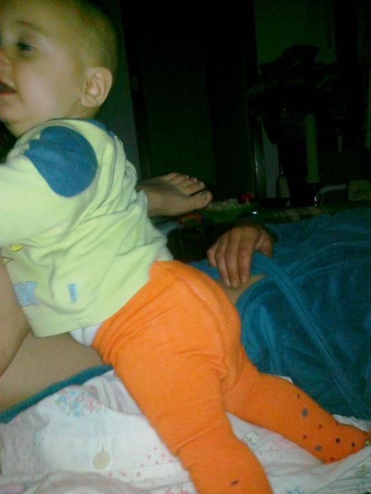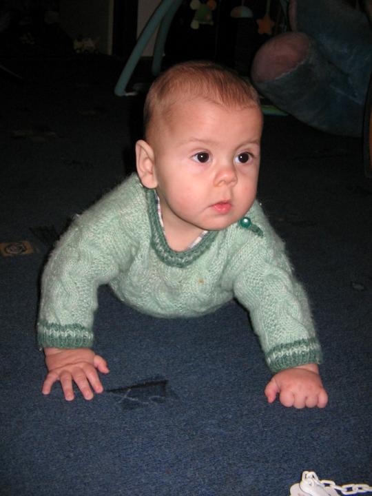 tak maličký již chodí dá se říct pořád po svých 🙂 sem tam po čtyřech ale to jen když zavrávorá či tak