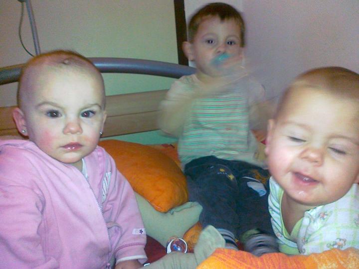 tak mireček zkouší udělat krok a když chce druhý tak spadne 🙂 šikulka moje malá 🙂