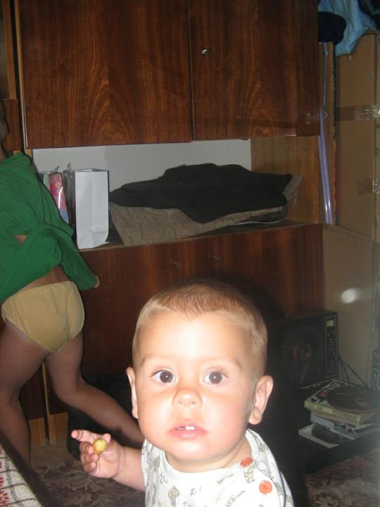 tak malicky nejen ze prochodi vic jak pul dne ale uz si i troufa.pravě vylezl na detsky stul.