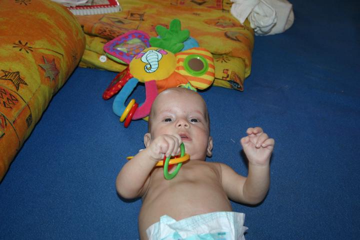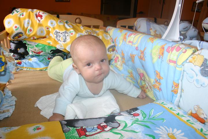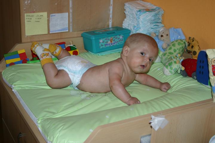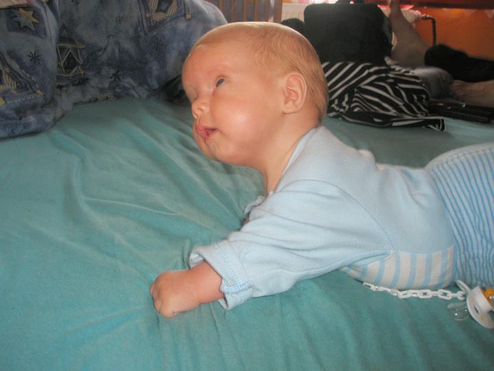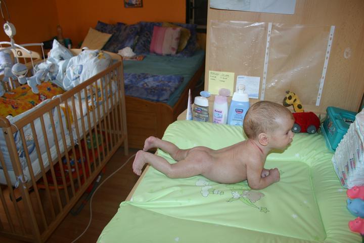 Od včera se Kuba přetáčí ze zad na bříško.Jen na pravou stranu.