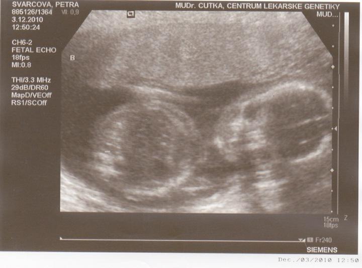 20.října-Dnes jsem byla v Českých Budějovicích na ultrazvuku.Obě mimi jsou v pořádku,jsou stejně velcí 6cm.Na ultrazvuku nebylo vidět pohlaví.