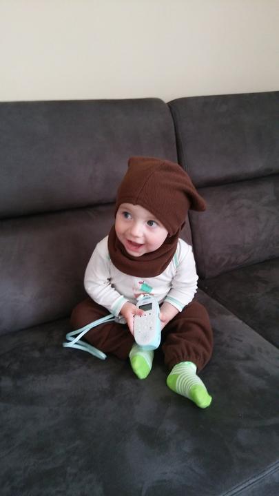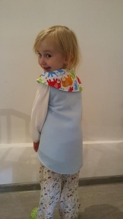 Joo, je to umělec.. Abstraktní.. Narve si plnou pusu špaget s omáčkou a kejchne. Všechno jsem chytila.. Ožužlaný kukuřičný křupky docela dobře fungujou jako sponky do vlasů - mejch, samozřejmě. A něco se mi objevilo na zádech. Nemám tušení, co to bylo původně, ale lepí to. Myslím, že od něj můžu čekat ještě velký věci 😀