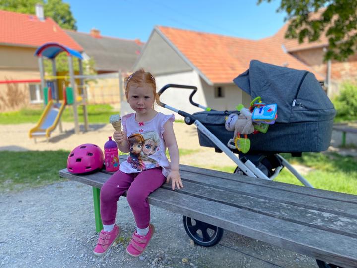 Zmrzlina a potom hřiště 😃 Kubík se přece vyspí i v kočárku 😃👍