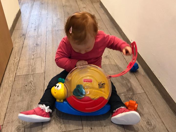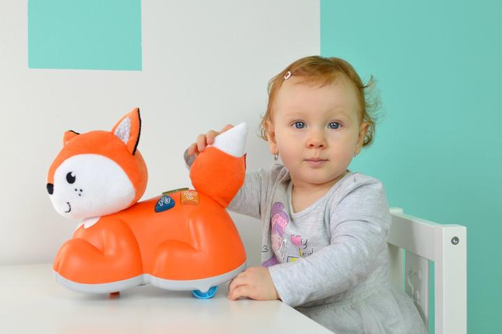 Nelinka už chodí, a tak lezeme s liškou povýšila na chodíme s liškou 😃 👍 Je to pro ni stále super zábava - prstíkem zmáčkne tlačítko a může vyrazit 🙂 A ještě se u toho lišácky směje 😃