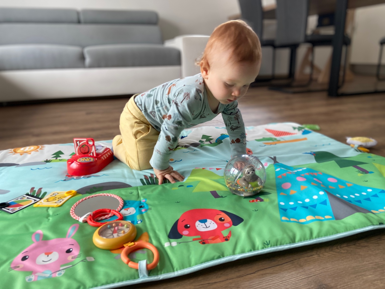 Ráda bych vám blíže představila novou podložku na hraní extra big adventures Fisher-Price. Nabízí dětem bezpečné místo pro zábavu a rozvoj motoriky. Obsahuje čtyři hrací prvky, které lze připnout k dečce. V tomto článku vám představím tuto maxi hrací podložku a prozradím vám, co nás na ni zaujalo.