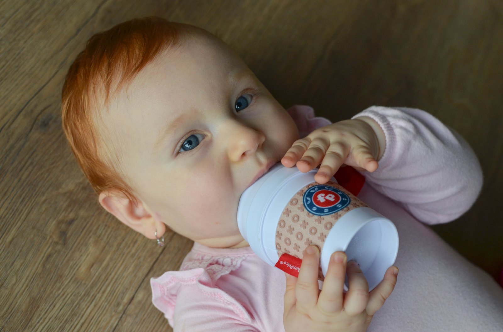 Hrníček představuje klasický kalíšek na kávu, který je tvořen z několika materiálů (plast, látka, guma, ...), a uvnitř ukrývá barevné kuličky a zrcadlo. Jeho největší vychytávkou je pro Nelu ale gumové hrdlo, které je ideální právě ke kousání - a je opravdu měkké. Zatím vše popsané Nelinka na hrníčku pečlivě objevovala a přišla i na to, kde jej nejlépe dát do pusy. Praktické je i poutko, za které se dá hrníček chytit. Už se ale moc těším, až pochopí i další smysl této hračky při napodobování dospělých. Konečně nebudu kafíčkovat doma sama 😉.