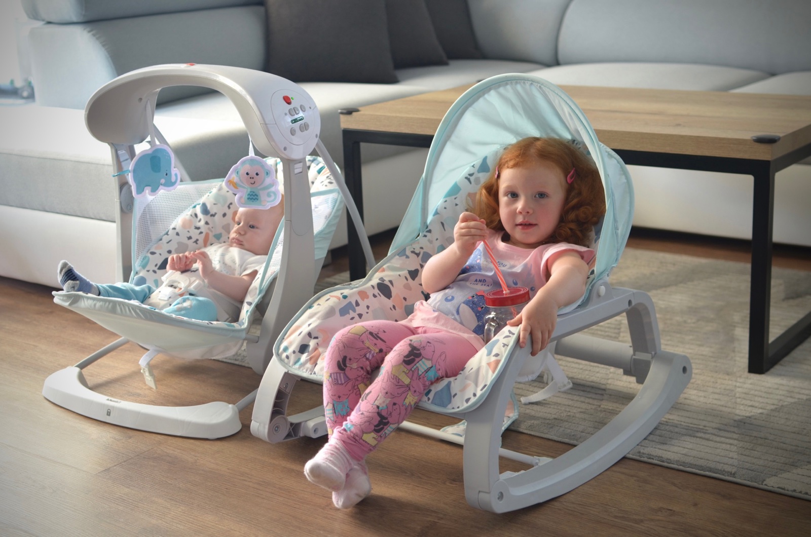 Kubík se v křesílku houpe a to Nelinčino sice umí vrnět, ale nám teď stačí, že se v něm pohodlně vyvalí (a stále je daleko pod váhovým limitem, tak nám ještě vydrží) 🤩
