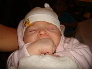 Porod: Ve čtvrtek večer mi praskla voda a tak jsme s manželem jeli do porodnice. Přijali mě s tím, že počkáme do rána jak se to vyvrbí a pokud to půjde pomalu, tak se porod vyvolá. Celou noc jsem ležela a počítala nepravidelné kontrakce. V pět ráno jsem byla otevřená na dva prsty. Dostala jsem injekci, klystýr a šla do sprchy. Kolem sedmé přijel manžel a přesunuli jsme se na porodní sál. Chtěla jsem si nechat píchnout epidurál, ale podle doktora už bylo pozdě a říkal, že by se to mohlo zastavit a že malá bude do 15min na světě. Ale malá nechtěla sestupovat a tak jsem ji musela tlačit v dřepě, moc to nepomáhalo. Manžel mě držel ze všech sil. Nakonec jsem vyzkoušela porodní stoličku a tam to pomohlo. Přesunula jsem se na postel, dvakrát zatlačila a malá byla na světě .... Manžel si přestřihl sňůru a dali mi ji na bříško. I tentokrát se porod obešel bez nástřihu a šití 🙂 Porod trval necelou hodinku ....