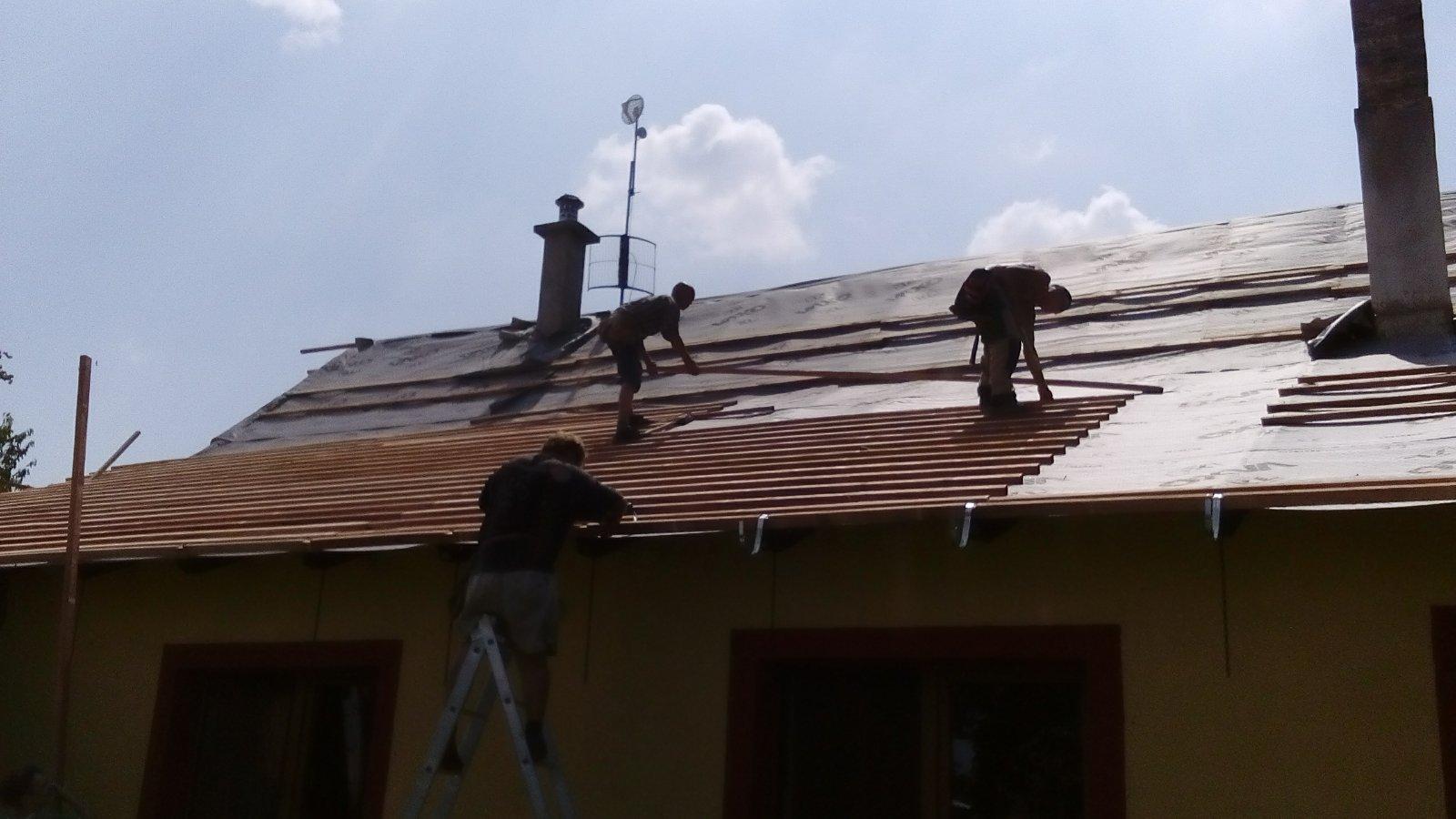 Pro všechny, co si stěžují na horko, aktuální foto z naší střechy 🙂. Je obrovská - 360 m2, chlapi dělají od rána do večera už od soboty. Ten do pasu je manžel, v rohu pomáhající puberťák, ti dva jsou kamarádi, kteří u nás pracují zadarmo ve svém volnu! Já nosím džusy a minerálky, vařím, peču a kdykoliv vylezu pomoci s něčím drobným do té výhně, říkám si, jak je to neuvěřitelné, že máme tak skvělé přátele.