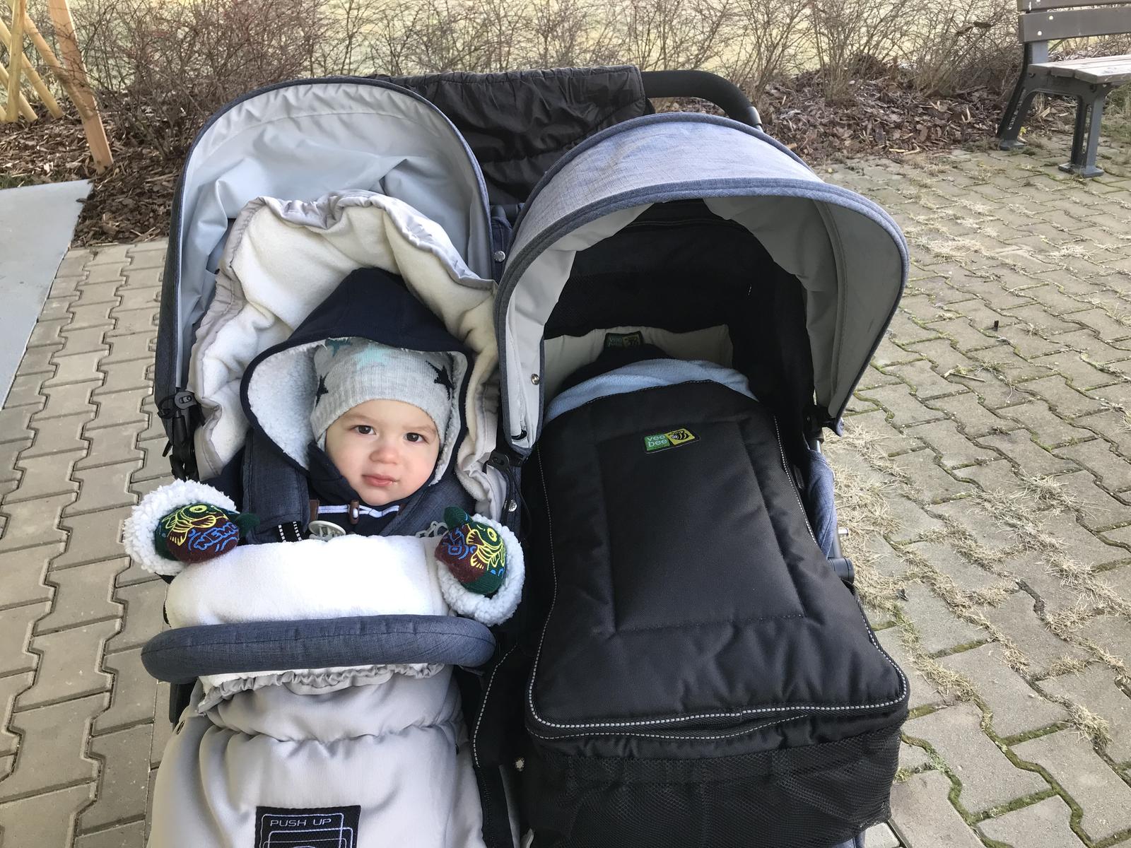 V duchu jsem se radovala, jak jsme to zvládli. Předčasně…ani ve snu by mě nenapadlo, že neprojedeme dveřmi do budovy, kde je lékárna. Asi mají na zimu zmenšený ten prostor na otvírání, aby jim neutíkalo teplo a já asi o pět centimetrů neprojela. No a co teď. Tu mast jsme nutně potřebovali a zítra mají zavřeno. A tak jsem nechala kočár před dveřmi a letěla do lékárny se zeptat, jestli ty dveře nejdou víc otevřít. Tam na mě lékárnice nechápavě koukala, aby mi řekla, že to netuší, že asi ne. Skvělý, tak jsem letěla zpátky pro recepty a čekala na kraji lékárny, abych na kočár aspoň viděla. Zrovna byla na řadě paní, která to měla na dlouho a jenom jedna lékárnice. Další byl nějaký chlap, tak jsem ho požádala, jestli bych ho mohla předběhnout, že mám v kočáru venku dvě děti a že sem neprojedu. Ten byl tak v šoku, že mě pustil. No jo, jenže než lékárnice sehnala po celé lékárně deset plechovek mléka a mast k tomu, trvalo to věčnost a tak jsem pořád běhala ke dveřím, jestli tam ty děti mám. Jedna stará paní ve frontě už mi i začala hlásit, že tam pořád jsou😂. No a nakonec jsem to všechno na třikrát odnosila do kočáru a konečně snad sláva hurá, bylo to za náma. Zpocená až na zadku, ale zvládla jsem to a konečně domu. Adámek byl neskutečně vzornej a krásně čekal, byla jsem na něj fakt pyšná. Ale pro příště už vím, že do lékárny buď s jedním dítětem nebo s tulou a normálním kočárem. Je fakt srandovní, že jediný místo, kde mě ani nenapadlo, že bych se nedostala, jsem se nedostala.