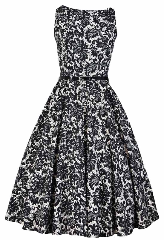 Nádherné šaty s imitací krajky v oblíbeném Audrey Hepburn stylu ohromí především svým elegantním duchem. Díky jemnému zpracování se hodí nejenom na společenské události, ale nebojte se je vytáhnout klidně na denní nošení do práce.