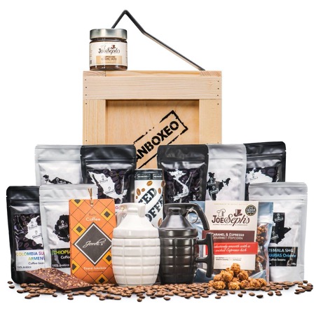 Bez dobré kávy neudělá ráno ani krok? Rád si pochutná na kvalitní výběrové kávě? Tak to je pro něj Manboxeo Bedna pro kafaře jako dělaná! V Bedně naleznete ty nejkvalitnější kávové produkty, které určitě udělají radost každému, kdo kávu miluje - světové kávové speciály pražené v rodinné pražírně v samém srdci Slovácka, luxusní popcorn Joe & Seph´s s příchutí espressa, karamel s příchutí kolumbijské kávy, kávovou čokoládu Rustic Coffee a ledovou kávu Manboxeo. V rozšířené XXL verzi naleznete i stylový porcelánový hrnek na kávu ve tvaru granátu.