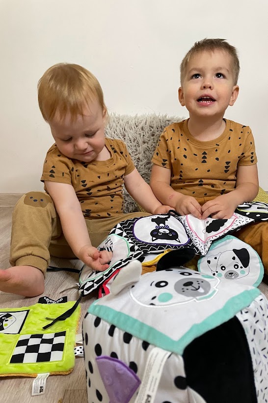 ,,Hračky GaGaGu jsou opravdu přizpůsobeny nejmenším. Jsou vhodné od narození až do dvou let věku dítěte. Hlavní motivy jsou černobílé, aby dítě nebylo zbytečně rušeno ostatními vjemy. Přitom jsou všechny hračky doplněny krásnými nevtíravými barvami. U nás se multisenzorické hračky líbily všem klukům, každého zajímalo, co to je nového. Náš nejmladší 16-měsíční Eliášek si na první pohled oblíbil GaGaGu Smyslovou kostku maxi a Smyslovou knížku Mýval. Obě hračky jsou příjemné na dotek a hlavně jsou tady Eliho oblíbená zvířátka. Nechybí zde i šustivé prvky, aby dítě; vnímalo i sluchem. Oblíbená jsou také bezpečná poutka, za která mohou menší děti snadno hračku uchopit.”