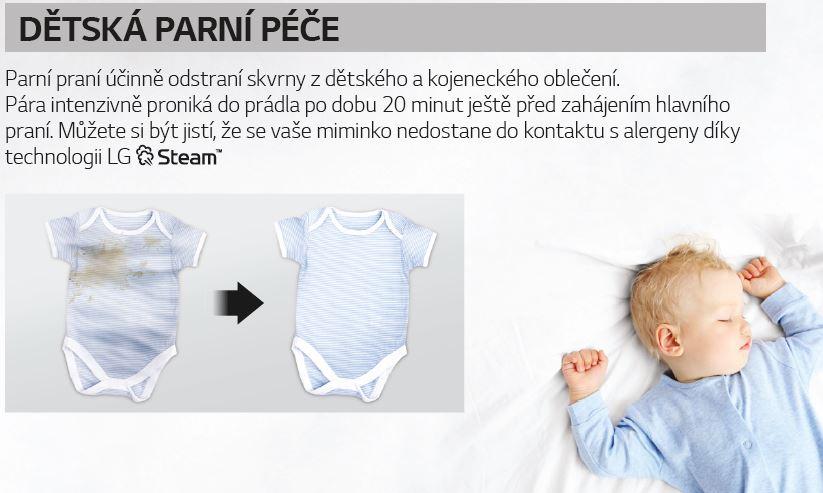 Ovládnout páru zvládnete pomocí parních praček společnosti LG, které jsou pro boj s alergeny přímo stvořené. Využívají totiž technologie TrueSteam, tedy čistí prádlo pomocí páry. Tyto parní pračky obdrželi britskou certifikaci BAF, které potvrzuje zničení až 99,9 % alergenů! Přímo pro alergiky je připraven speciální program a vybrané modely nabízí také péči o dětské prádlo. Pomocí těchto programů bude oblečení zcela nezávadné.