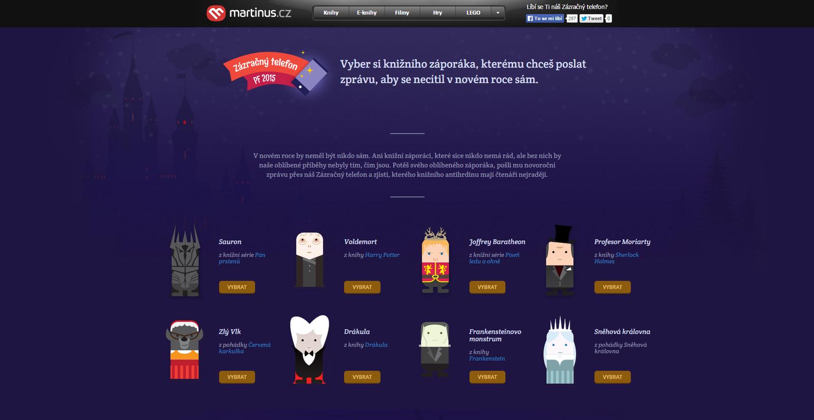 Knihkupectví Martinus přišlo s PFkem, díky kterému jste mohli milou novoroční zprávou přes Zázračný telefon potěšit knižní záporáky.