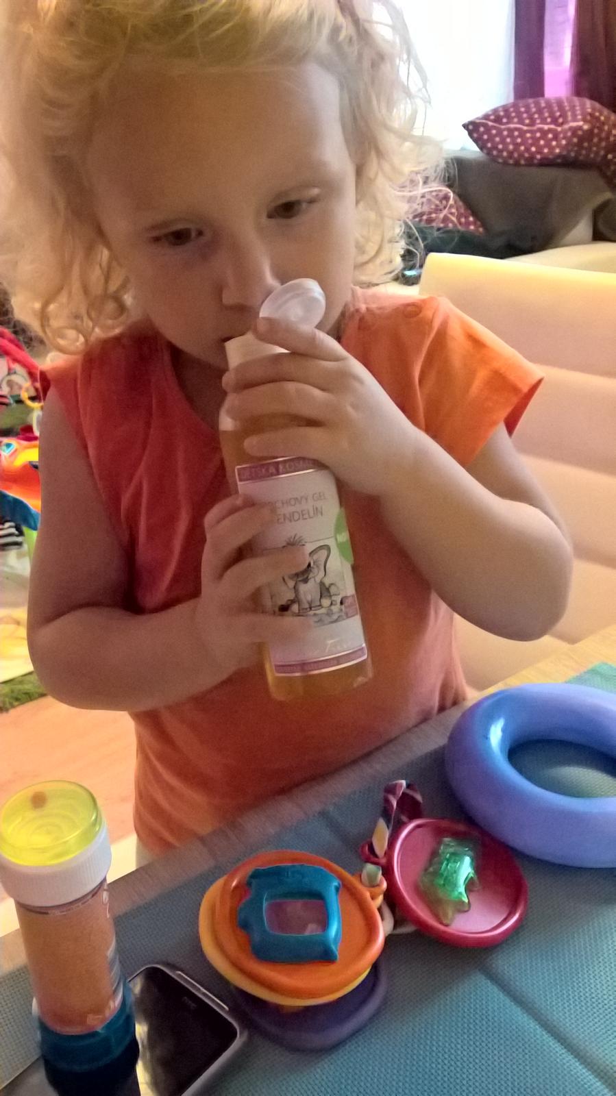 Rada na nej došla hned večer pri koupání. Musím říct, že opravdu hezky voní po pomerančích resp. po pomerančové kure. Mě a dcerce, ale po prvním použití naskákaly červené svédící fleky, nic moc příjemného. Synek bez problému a navíc voněl ☺ Druhý den jsem ho zkusila použít znovu, tentokrát se mi fleky neudělali. Dceri jsem dala den pauzu a zkusila ji ho o den dyl, ji ale proste nesedl.