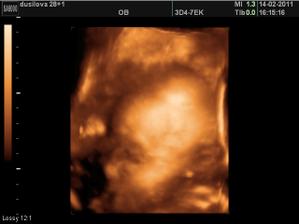 Ve 28tt nám paní doktorka na 3D ukázala krásnýho chlapečka i s jeho pýchou 🙂 Na 99,9% čekáme chlapečka - Tadeáška. Jsem hrozně moc šťastná, že nám vyšlo to co jsme od začátku chtěli - mít starší dcerku a mladšího syna! Tak teď už to jen zdárně doklepat do konce 😀