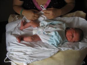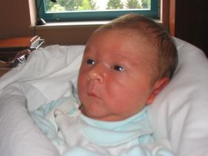 Tak jsme se těšili, až jsme se dočkali. Náš Mišunka se narodil 12.6.2010 ve 20,25 hod císařem, měl 3490 g 53 cm. Když mi ho ukázali zdál se mi hrozně malinkej, Daník měl proti němu 2x tak velkou hlavičku a byl buclík a Míša je spíš dlouhán s velikýma ťapkama a má hodn černých vláků
