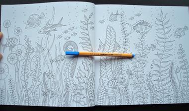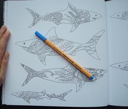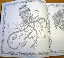 Papír je tentokrát čistě bílý a barvy typické pro podvodní svět na něm tak krásně vynikají.