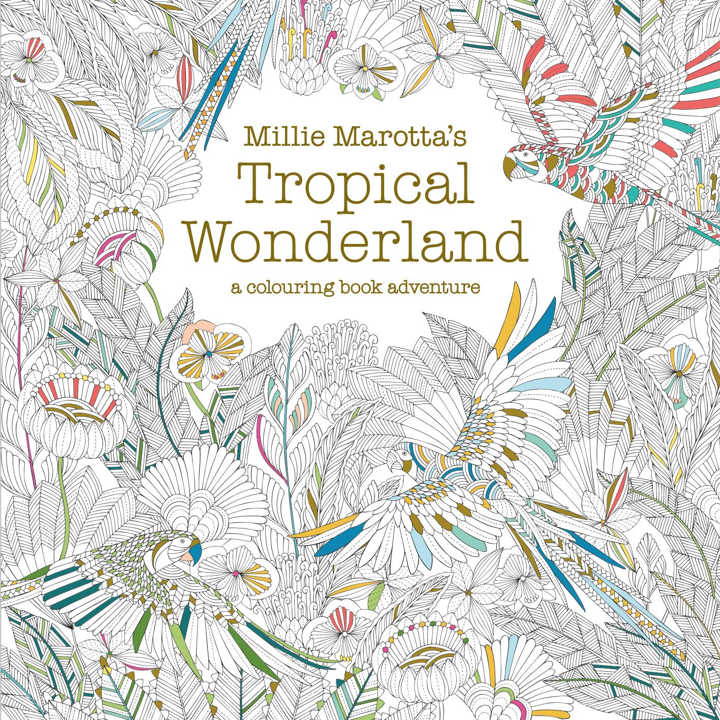 Druhou knihou v pořadí, kterou Millie nabídla světu relaxace dospělých, je Tropical Wonderland. I v této knize je patrné okouzlení zvířecí a rostlinnou říší, ale tentokrát najdete více exotičtější exempláře 😉. Opět na čistě bílém papíře se můžete kochat tropickými rostlinami, podmořskými obrazci a zástupci pralesních obyvatel. Co takhle si vybarvit netopýry 🙂? Nebo vybrat barevnou škálu pastelek, která se bude hodit na exotické papoušky. A želvy a listy a květiny a kaktusy a.......