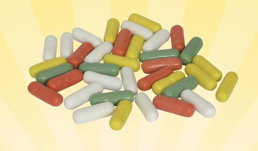 Složení: cukr, pšeničná mouka, glukózový sirup, lékořicový extrakt, barviva (rostlinná uhlíková čerň, kurkumin, karmíny karoteny, měďnaté komplexy chlorofylů a chlorofilinů), zahušťovadlo (arabská guma), maltodextrin, pšeničný škrob, lešticí látky (karnaubský vosk, včelí vosk, bílý a žlutý šelak), emulgátor (mono a digliceridy mastných kyselin) aromata (anethol, badyánová silice). Obsahuje lepek a skořici.