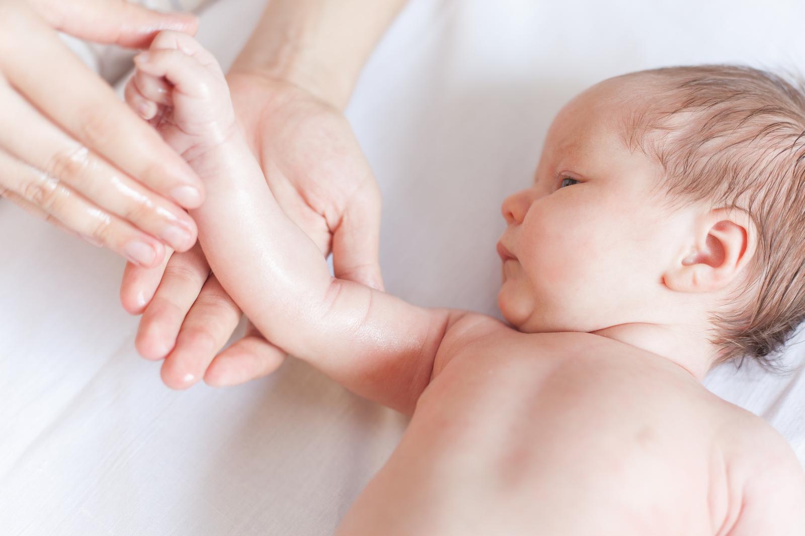 Miminka nepotřebují zvláštní péči, rozhodně je vhodné volit co nejméně syntetiky a chemie. Nejlepší je umývat je čistou vodou, pokud máme hodně chlórovanou, lze pořídit sprchový filtr. Na znečištěný zadeček postačí kvalitní přírodní mýdlo bez jakékoliv parfemace. K promazání po koupeli může maminka vyzkoušet čistý mandlový, meruňkový nebo jojobový olej, případně vhodné směsi olejů a másel. Někteří výrobci nabízejí pěkné produkty na této bázi bez konzervantů a parfemace, například dětské tělové máslo od Purity Vision je běžně dostupné v řetězcích DM. Malým dětem bych se snažila co nejméně narušovat přirozený kožní biom chemií, to posílí jejich obranyschopnost.