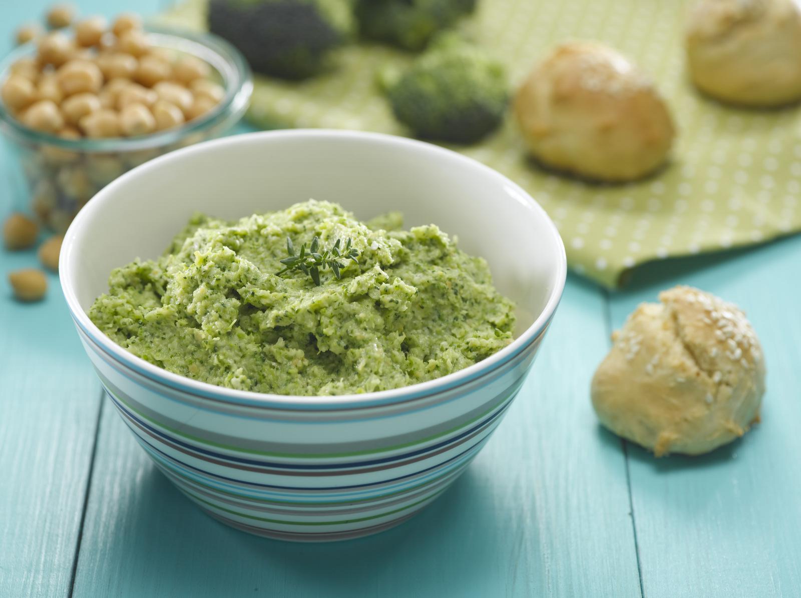 2. Růžičky brokolice vložte do mísy, přidejte scezenou cizrnu, máslo, sůl a rozmixujte.